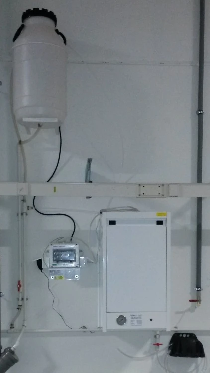GORO AKU BOX for production of distilled water. Description of the device with higher performance:Reverse Osmosis Cabinet AQUA 100 BOX. Cabinet with ion exchanger DEMI 20 BOX. Storage tanks with volume of 100 to 300 liters with support. Possibility of distribution throughout the entire building .Unlimited number of filling places.
